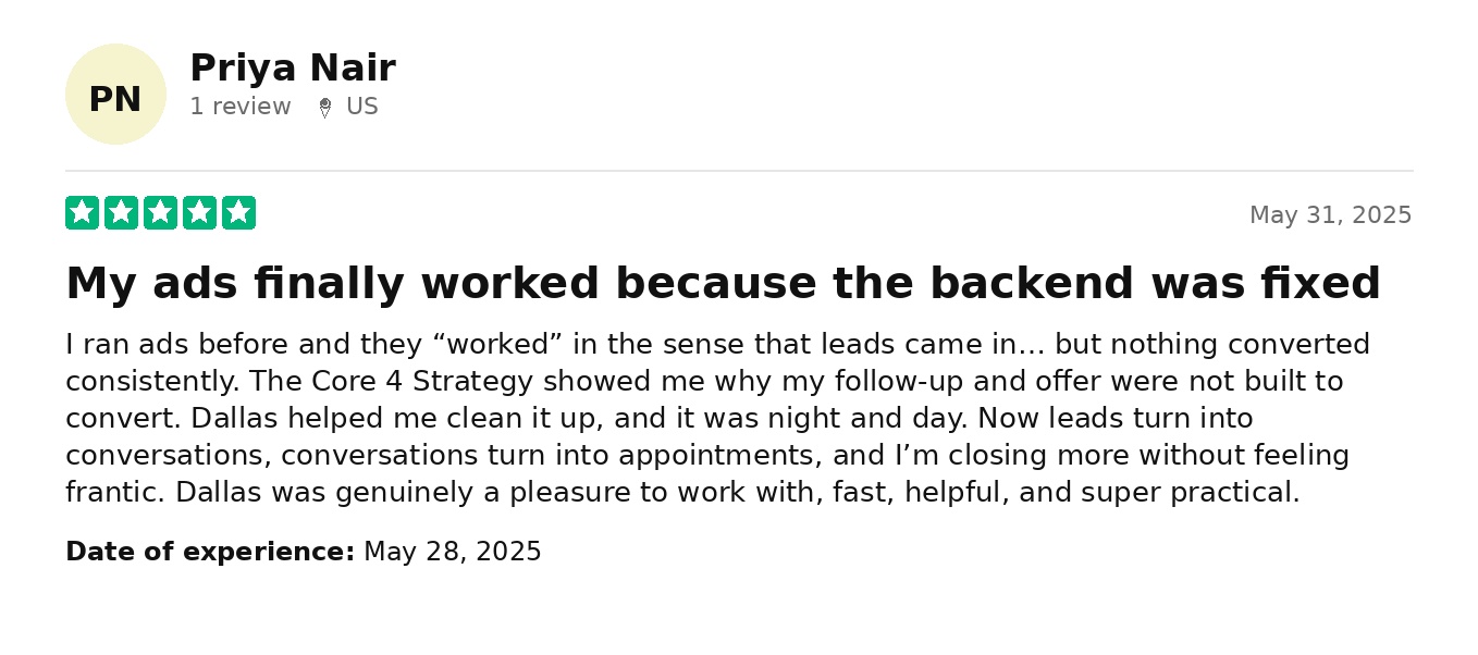 Ad spend is separate. We recommend a budget based on your market, competition, and lead volume goals.